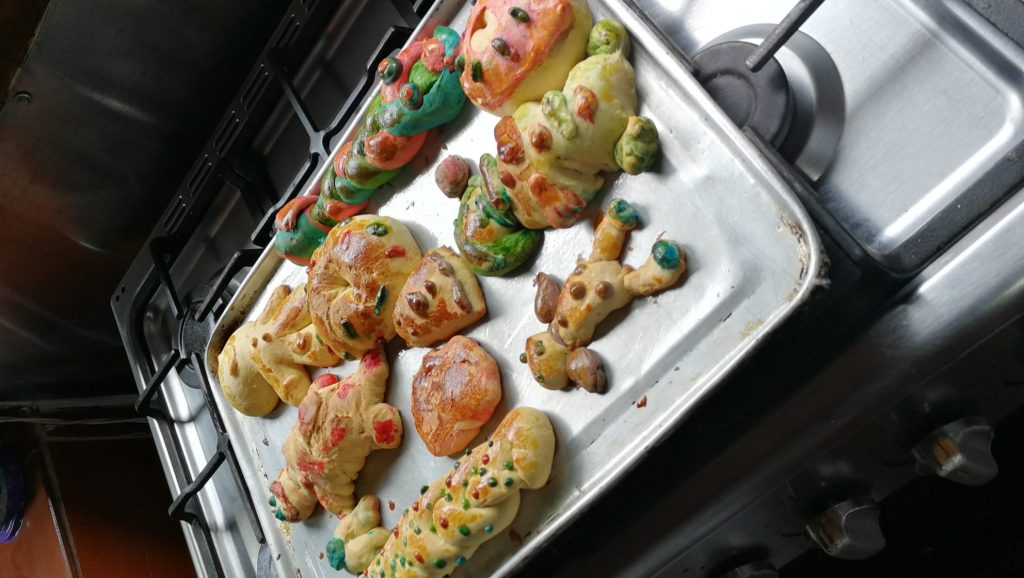 Heute ist es so weit, wir backen mit den Kindern Guaguas de Pan (Dt. Brotkinder), die typische Allerheiligenbäckerei Ecuadors. Das bedeutet einen schönen, aber sehr vollen Arbeitstag. Und bis zum Ende des Tages werde ich schon zur Meisterbäckerin ernannt. Trotz meiner Abneigung gegen das Gas-Backrohr.