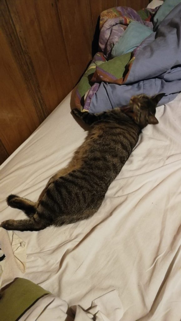 Und weil das Wochenende schon so gechillt ist, beschließen wir einen WG-Filmabend zu starten. Das wird eine Tradition, die wir über die halbe Woche fortführen, denn dann müssen wir die Matratzen auch nicht mehr wegräumen. Zwischen Rapunzel, High School Musical, The Greatest Showman, Sugar man und Forrest Gump finden wir dann auch eine gute Filmmischung. Dass Ganze manchmal bis um 1 Uhr Früh dauert, daran ist eigentlich die Katze schuld. Die wollte uns nämlich in Felix‘ Zimmer Kunststücke vorführen. „Ich sitze oben auf der Tür und trau mich nicht mehr runter“, zum Beispiel. Oder einfach „Ich bin schneller als ihr denkt, fangt mich doch mal.“ Das Ganze wird unter lautem Gemauze vorgetragen, dass wir ihr auch wirklich Aufmerksamkeit schenken. Nach einer guten Zeit Zirkusvorführung wird sie jedenfalls in Majas Zimmer zwangsversetzt und soll dort schlafen gehen. Ich hätte wirklich von 10 runterzählen sollen, denn es wäre sich grad ausgegangen bis zu wütenden „Katze, nein“-Rufen und einer unter lautem Mauzen aus dem Zimmer fliegenden Katze. War wohl nix. Also ist mein Zimmer dran. Da hätte ich wohl die Tür zumachen sollen, denn ehe wirs uns versehen hockt die Katze schon wieder bei Felix. Und die Zirkusvorführung beginnt von neuem. Irgendwann ists dann auch genug mit Unterhaltung und sie kommt endgültig in mein Zimmer. Und wider Erwarten schläft sie dort auch sehr brav, nachdem sie noch 5min meine Kleiderstange demontieren wollte. Vielleicht haben sich die 4 Monate Möchtegern-Katzenerziehung ja doch gelohnt.