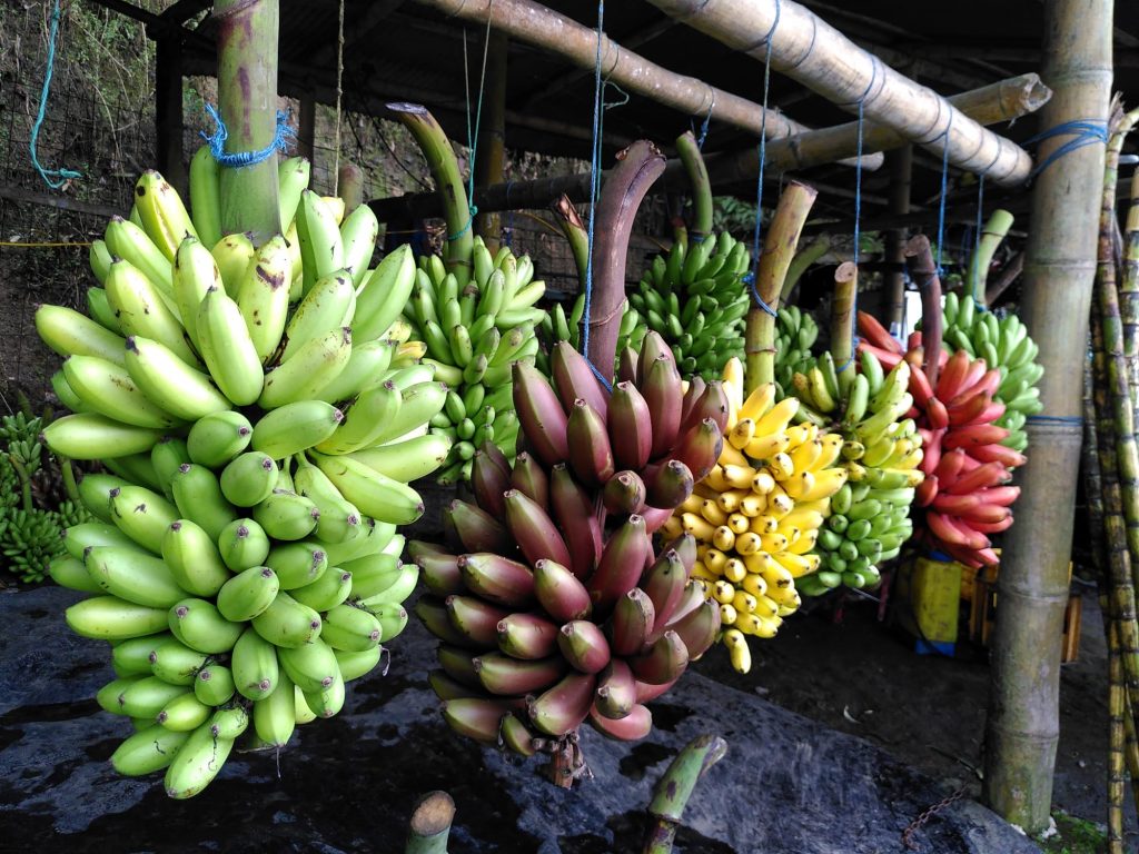 Wie halt Roadtrips so sind gehts wieder mit Rudi weiter. Zwei Stunden und 30 Minuten sagt das Navi bis zu unserem nächsten Ziel, der Küstenstadt Guayaquil. Dort wollen wir Sandra in ihr Hostal bringen, ihr Freund kommt da am Flughafen an und sie werden morgen ans Meer nachkommen. Am Weg in die Stadt landen wir dann unabsichtlich im Früchteparadies. Irgendwo auf einer Bergstraße taucht nämlich plötzlich ein Obstmarkt auf: Gefühlt 30 verschiedene Bananensorten, Drachenfrucht, Kakaobohnen, Melonen, Ananas. Die Auswahl ist riesig. Wir verkosten also mal die Minibananen und rote Bananen, von denen wir jeweils einen Dollar kaufen – das heißt, dass uns erwa ein Sechstel der Bananenstaude abgeschnitten und in die Hand gedrückt wird. Wir kaufen noch einiges anderes und knacken gleich hinter dem Auto die Kakaofrucht. Nach einer kurzen Einschulung von Julia und Felix lutschen wir alle das weiße Fruchtfleisch von den Bohnen. Die Skepsis verschwindet schnell, ich verliebe mich in das sauer-süße Fruchtfleisch.