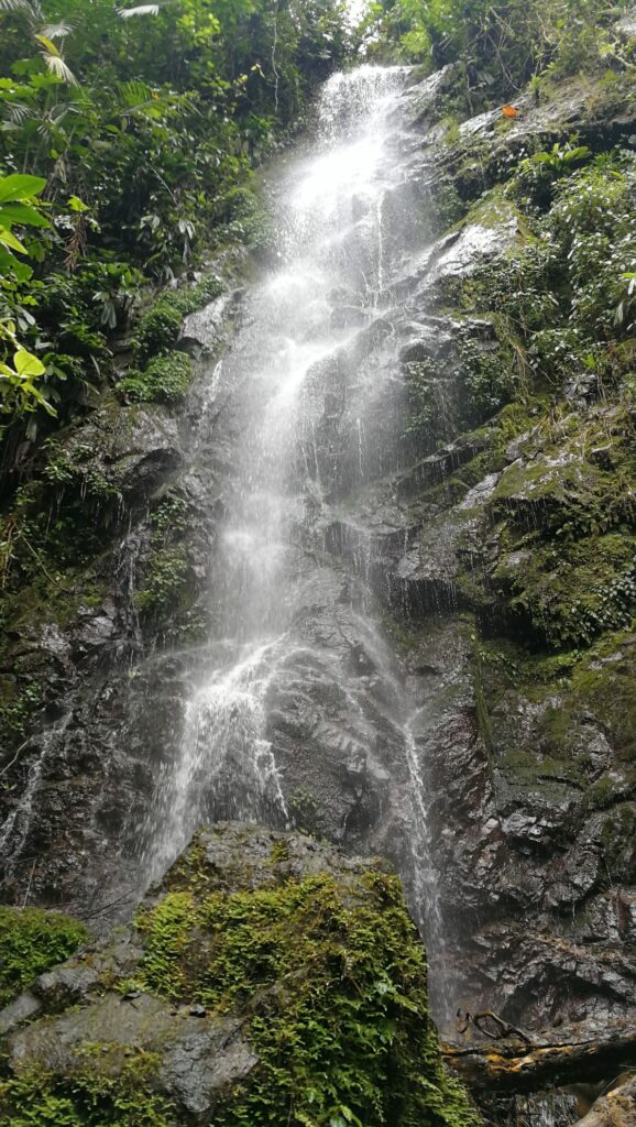 Mitten auf dem Berg erreicht uns schließlich ein Mail der österreichischen Botschaft, dass es in Ecuador gerade Proteste gibt. Wir mögen auf uns aufpassen. Tja, liebe Botschaft, vielen Dank aber wir haben gerade andere Probleme. Wir stehen bei den Wasserfällen und wissen nicht genau, wie wir wieder runterkommen sollen. Aber zuerst einmal lasse ich es mir nicht nehmen im Wasserfall zu duschen. Das werde ich vermissen in Österreich. Ist das dort überhaupt erlaubt?