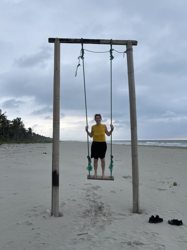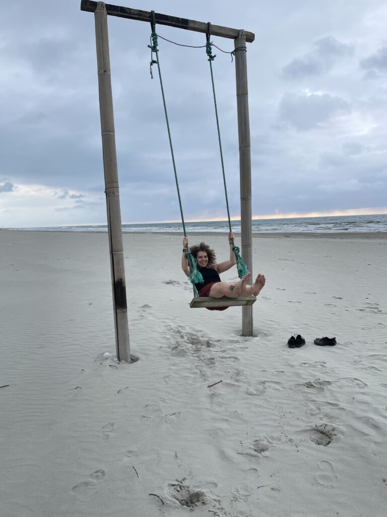 Zurück am Boot fragt der Bootsfahrer, ob wir noch auf Portete schwimmen gehen wollen. Ja, why not? Wir hüpfen also vom Boot, holen uns ein Eis und marschieren zum Strand. Felix hat eine Schaukel in Erinnerung, die wir suchen wollen und auch recht schnell finden. Dort springen wir ins Meer, sogar ich trau mich rein. Die Sonne steht langsam tiefer am Horizont, während wir versuchen über die seeehr großen Wellen zu springen. Ganz schön witzig, wir trinken auch nur ganz wenig Meerwasser. Als wir aus dem Wasser gehen ahnen wir noch gar nicht, welche Überraschung noch auf uns wartet.